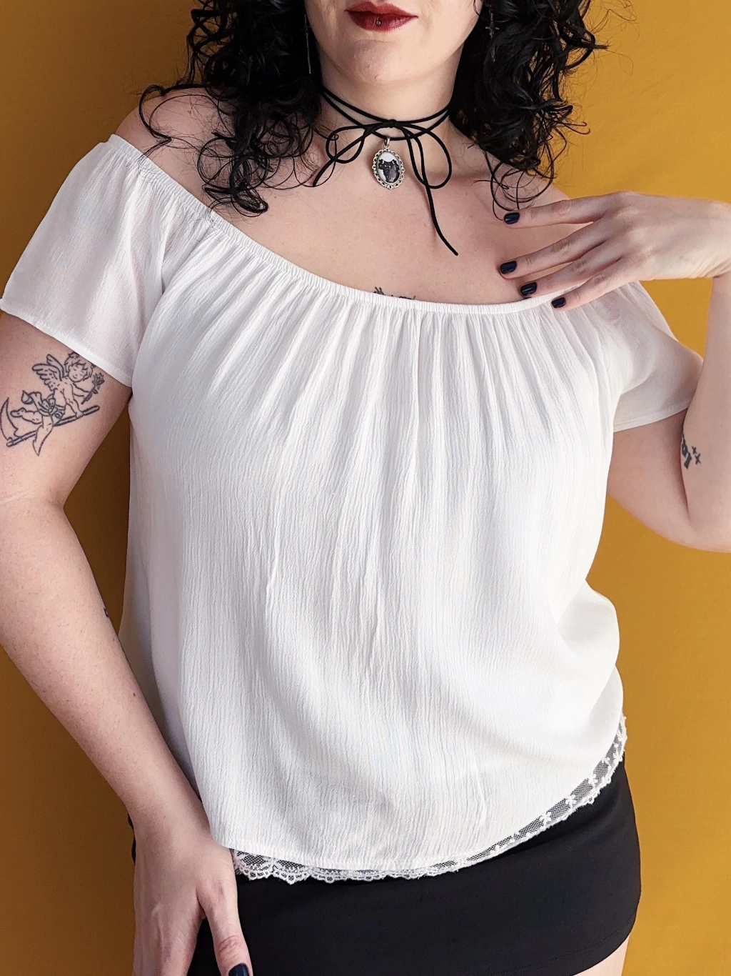 Peça produzida em algodão, possui forro, elástico no decote e lindo detalhe em renda na barra, está muito delicada.