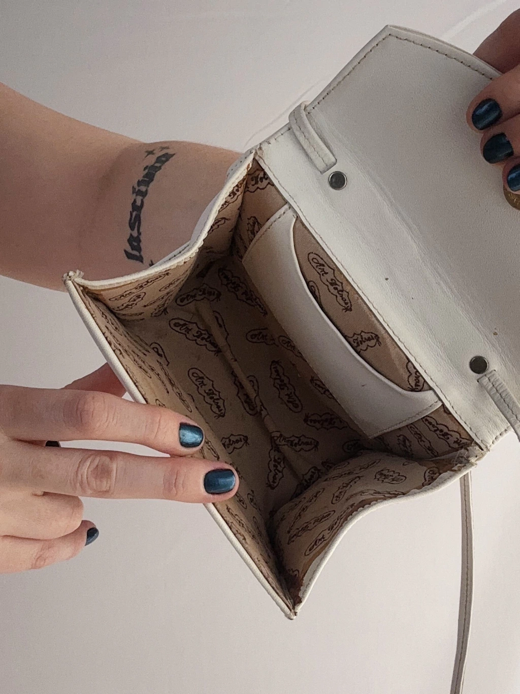 Peça vintage, produzida em couro, possui modelagem estruturada, bolso interno e duas alças, muito delicada e fofa. (Possui pequenos detalhes que foram consertados por nós.)