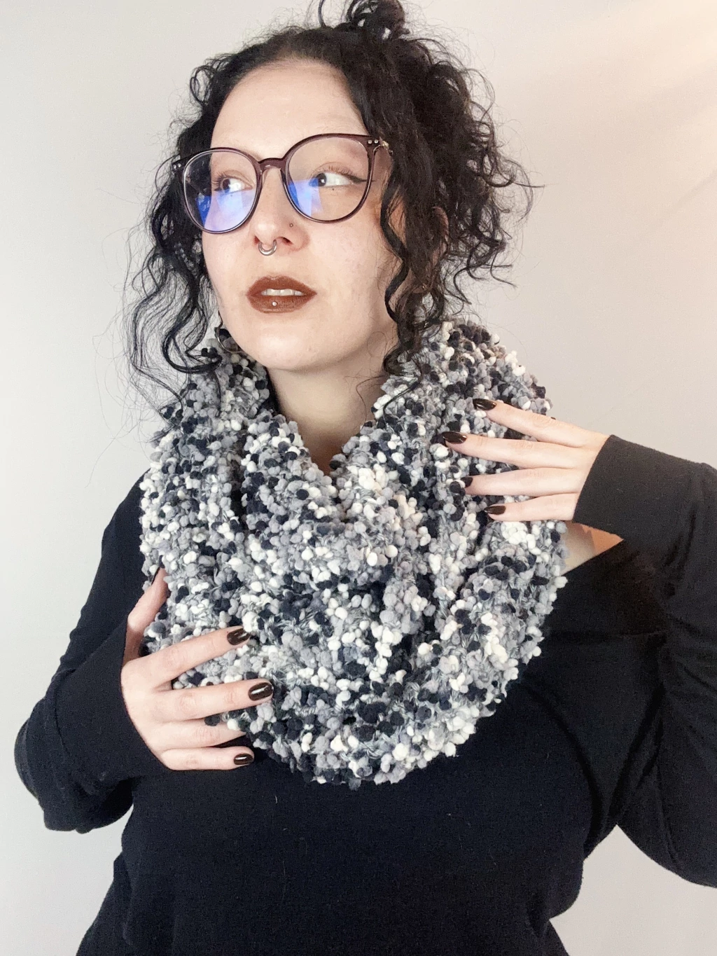 Peça autoral, prpduzida por nós em em tricot, a lã é sintética e no modelo fio pompom, está muuuito macia e os pompons irregulares e pequenos estão um charme, a cores estão belíssimas e o modelo tipo infinito fica lindo no corpo pode ser usado de várias formas.