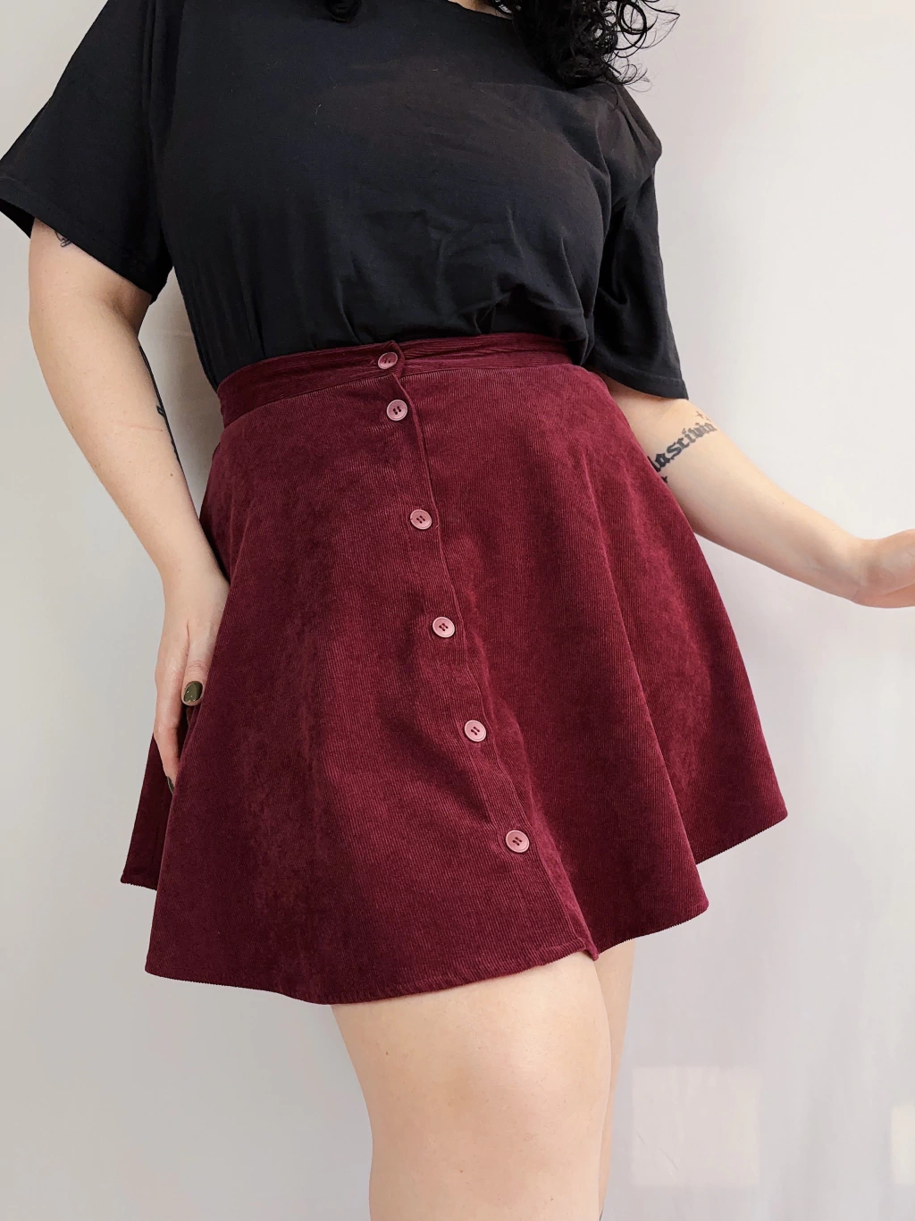 Peça produzida em veludo cotelê 100% algodão, possui cintura alta e botões funcionais, a modelagem godê está um xuxu, caiu como um sonho no corpo.